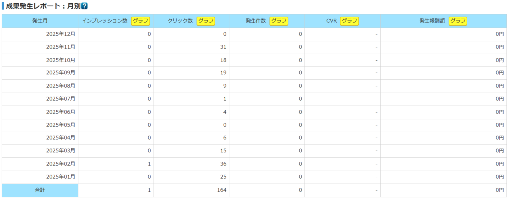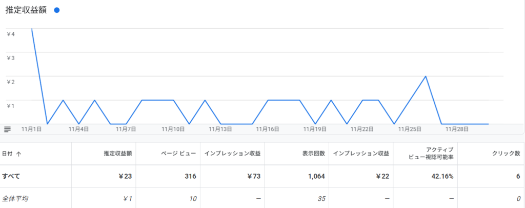 ただ、クリック数はかなり増えてはいますが、それが報酬にはつながっていないのが残念なところです。