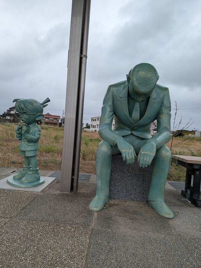 歩いていくと度々コナンのキャラクターオブジェにも会うことができます。中にはカラーのものも。