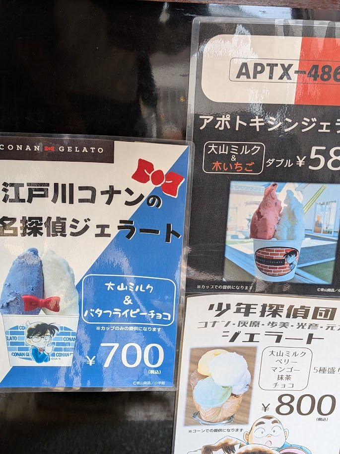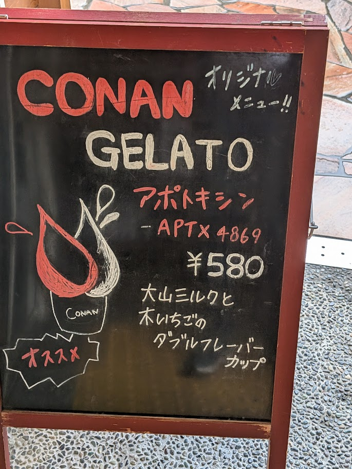 ジェラート屋さんではコナンならではの商品を売っていたりします。