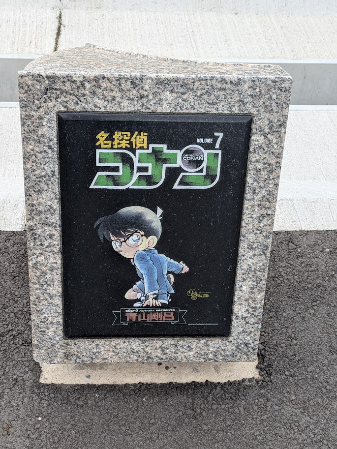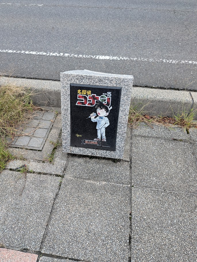 道路にはオブジェやモニュメントの他にもコナン関連のものがあります。