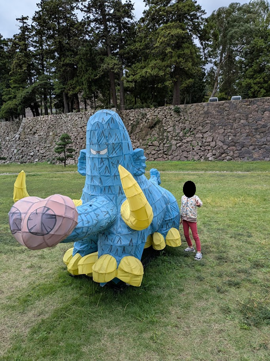 なんか城郭のなかにマンモスのオブジェが。ギャートルズに出てきそうなマンモス。なんで??