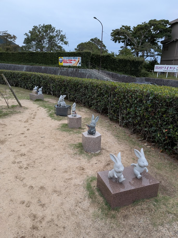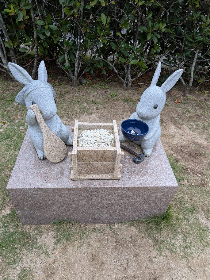 出雲大社の南側のメインの鳥居から敷地内に入っていきますが、入口の手前にもその先にも多くのウサギの像があります。そのウサギの像を一つひとつ見ていくだけでも結構な時間がかかってしまうので注意です。
