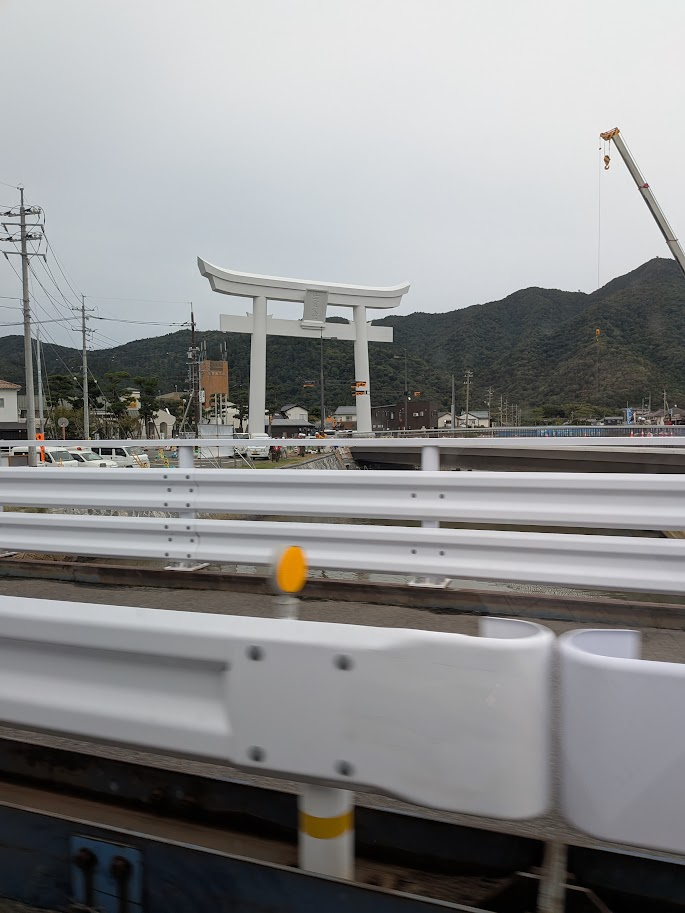 出雲大社から南下するとなんか別の鳥居がみえてきました。しかし、この下は工事中でくぐれず。
