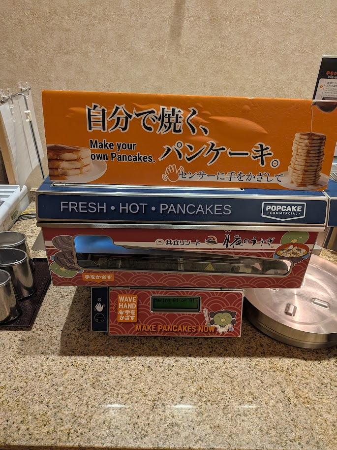 ご飯はいろいろあってめっちゃうまかった。驚いたのが全自動のパンケーキ焼く機械!手をかざすだけで勝手に両面やいてきれいに出てきたのには感動!