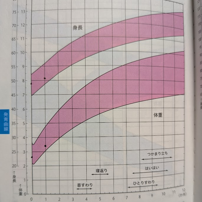 ちなみに生後3か月では体重が出生時の2倍になっているのが目安となります。これは3か月で約3㎏増加を目指すので、出生時は大体3000gが標準なため2倍になるよねということ。
