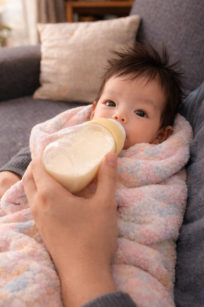 - 妻が夜担当として12時~1時ごろに最後となるミルクまで与える。