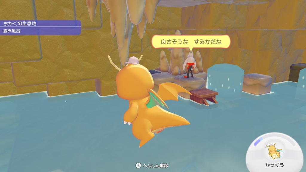 例えば、上の画像にもあるカイリューの姿はジャンプで空中にいるときだけ発動できる「かっくう」。残念ながらこれだけでは上に飛び上がっていくことはできませんが・・・。