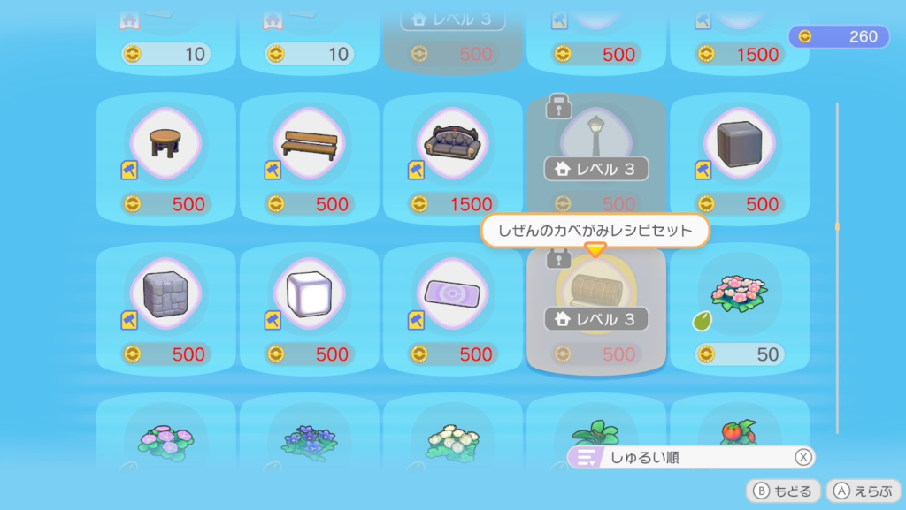 環境レベルがあがると、ポケモンセンターの外にあるパソコンで様々なアイテムを購入することができます。下の写真だと、環境レベルが3になるとロックが解除されて新しいアンロックアイテムが出現してきます。