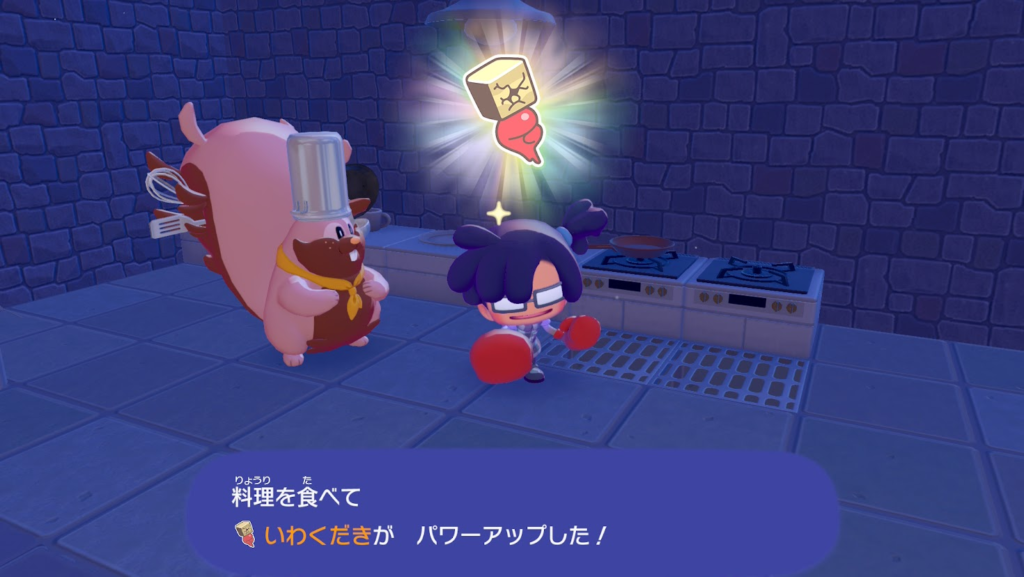 さらには、覚えた技も特定の料理を作って食べる事で一時的なパワーアップをすることができるため、今まで砕けなかったものが砕けたり、切れなかったものが切れたりと、ストーリーを進めるうえで重要な役割を果たしていきます。