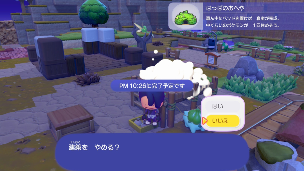 作りたい場所を更地にして、必要な材料とポケモンを集めて作っていきます。