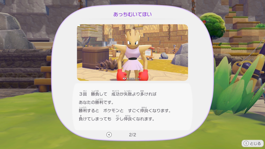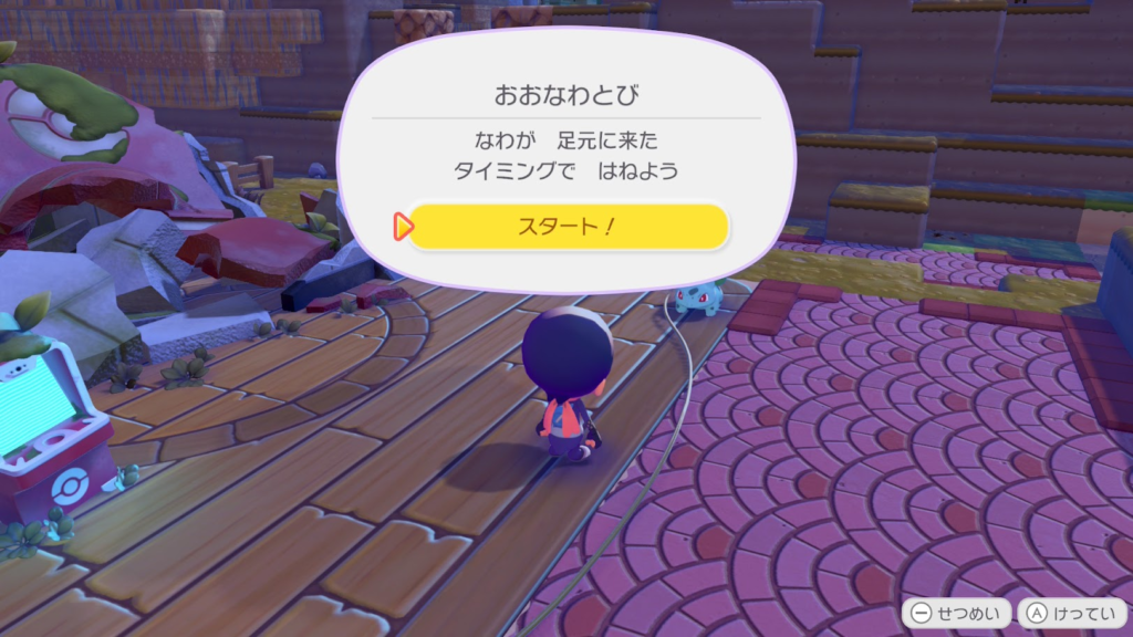 ポケモンたちに話しかけると、クイズを出されたり、ポケモンによっては「あっちむいてほい」や「おおなわとび」などなど。他にもあるので探してみてください。
