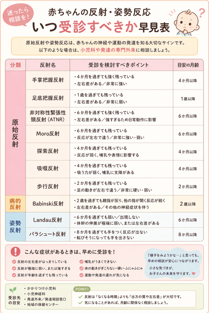 ⚠️ 長く残ると、運動発達の評価が必要になることがある。