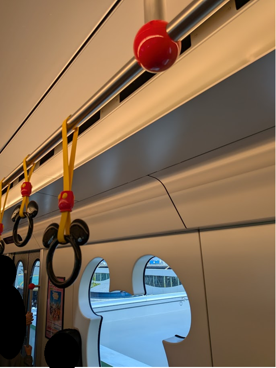 そして電車の中はつり革や窓枠がミッキーの形に。