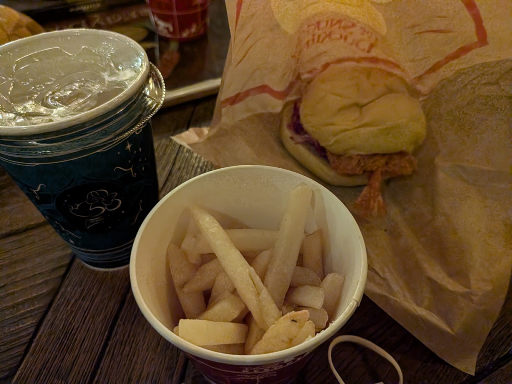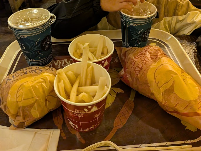 子供はチーズバーガー、自分はフライドシュリンプバーガーをそれぞれセットで注文。